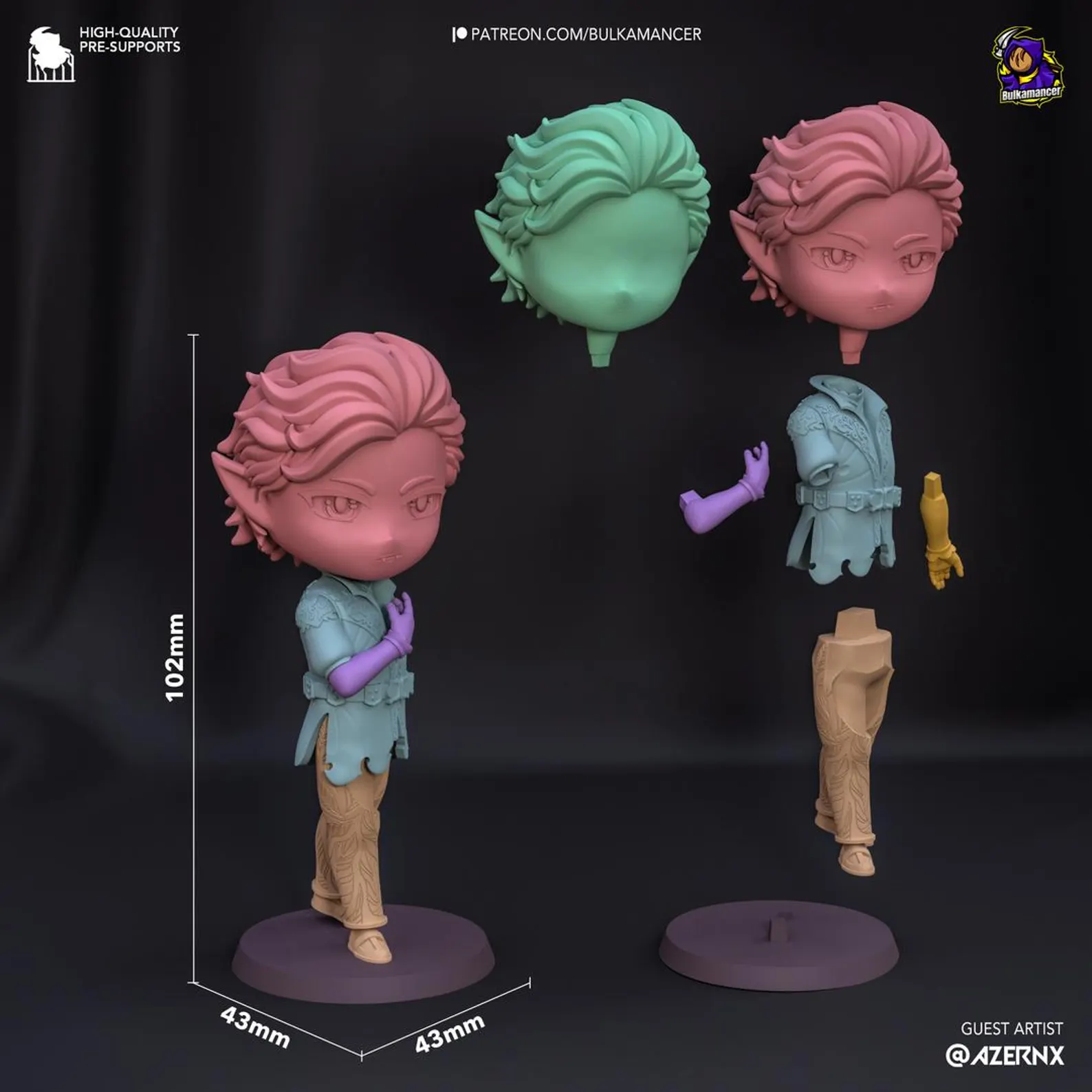 Standing 102 mm tall, Chibi Astarion combines high-detail craftsmanship with playful personality. Display him as-is or paint him in his iconic colors to bring out every fang, curl, and ruffle of his outfit.