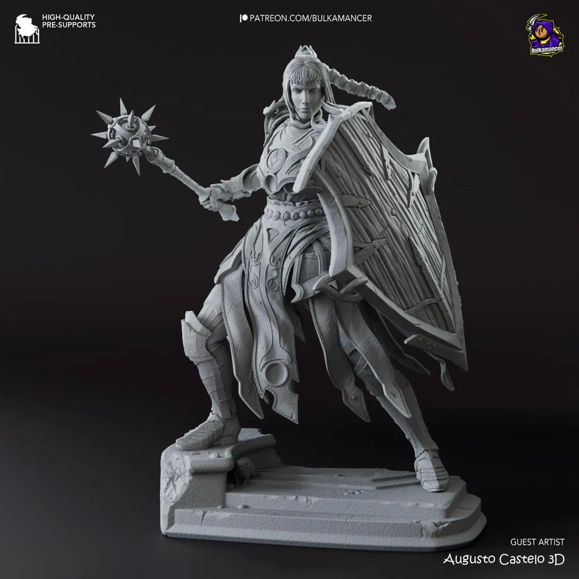 Baldur’s Gate 3 – Shadowheart Figure (~24–26 cm full statue or 13–15 cm bust). 3D printed resin with two interchangeable heads (silver hair / braids), armor, shield, and themed base. Available unpainted garage kit or hand-painted. Model by Bulkamancer Sculpts.