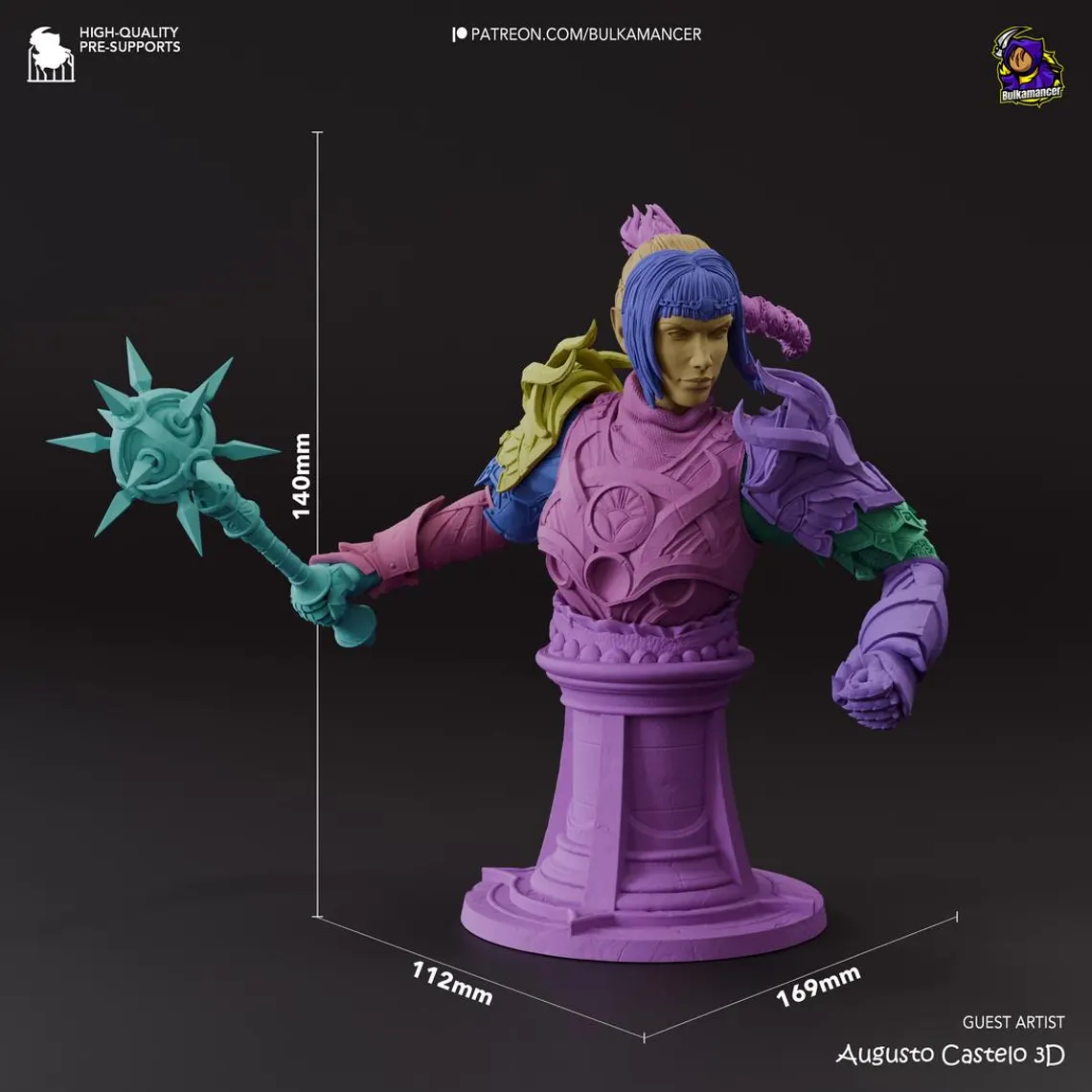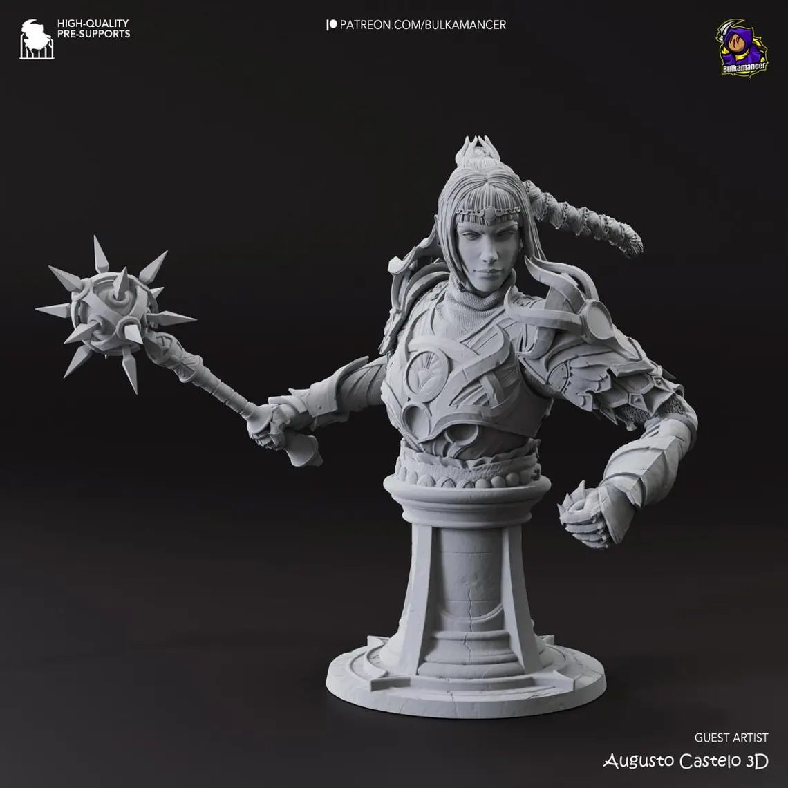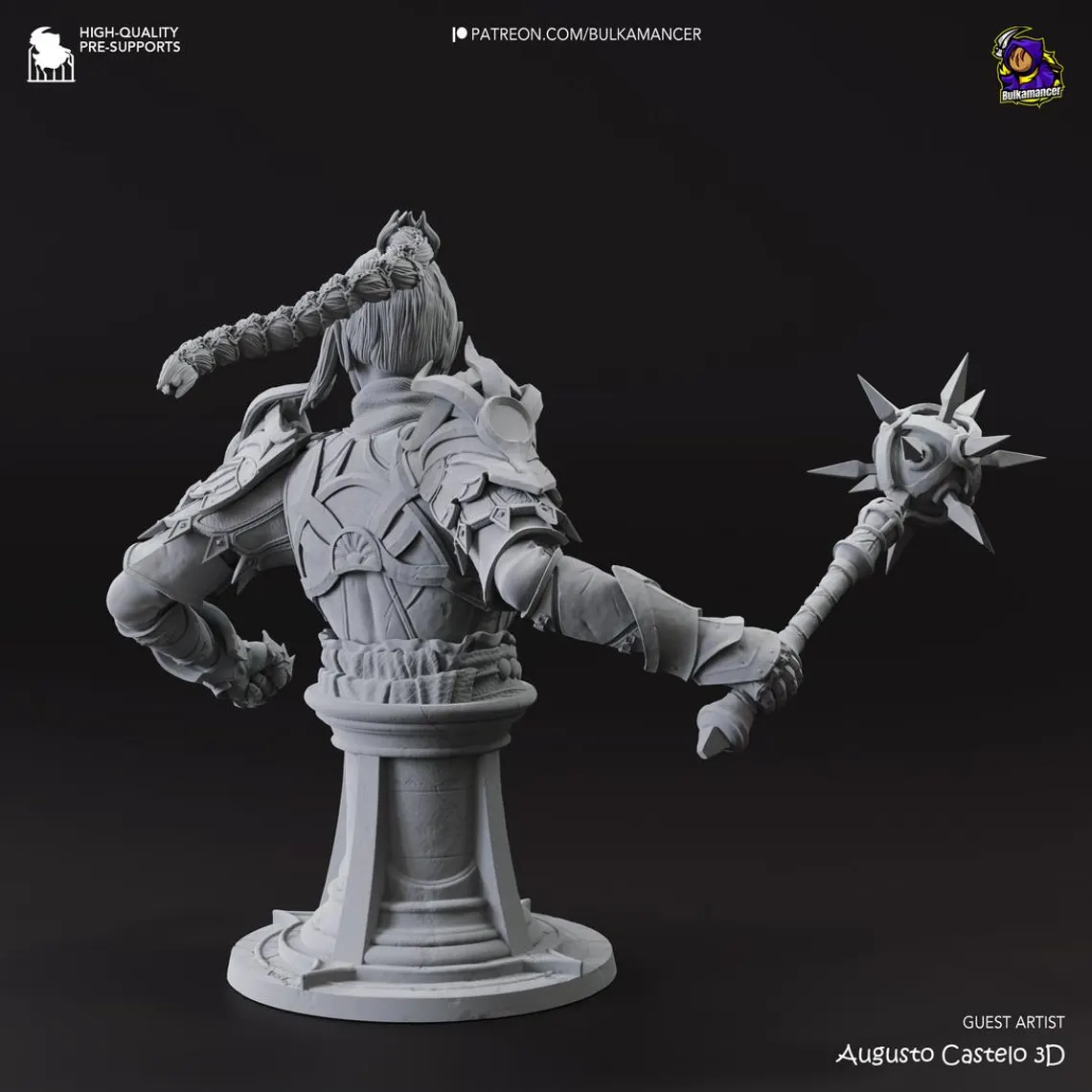 The enigmatic cleric of Shar, Shadowheart, arrives in stunning detail. This model captures her mysterious aura with ornate armor, shield, and two head options – one with long silver hair and one with dark braids. Available both as a full-body statue and a bust version, making it a versatile addition to any Baldur’s Gate 3 collection.