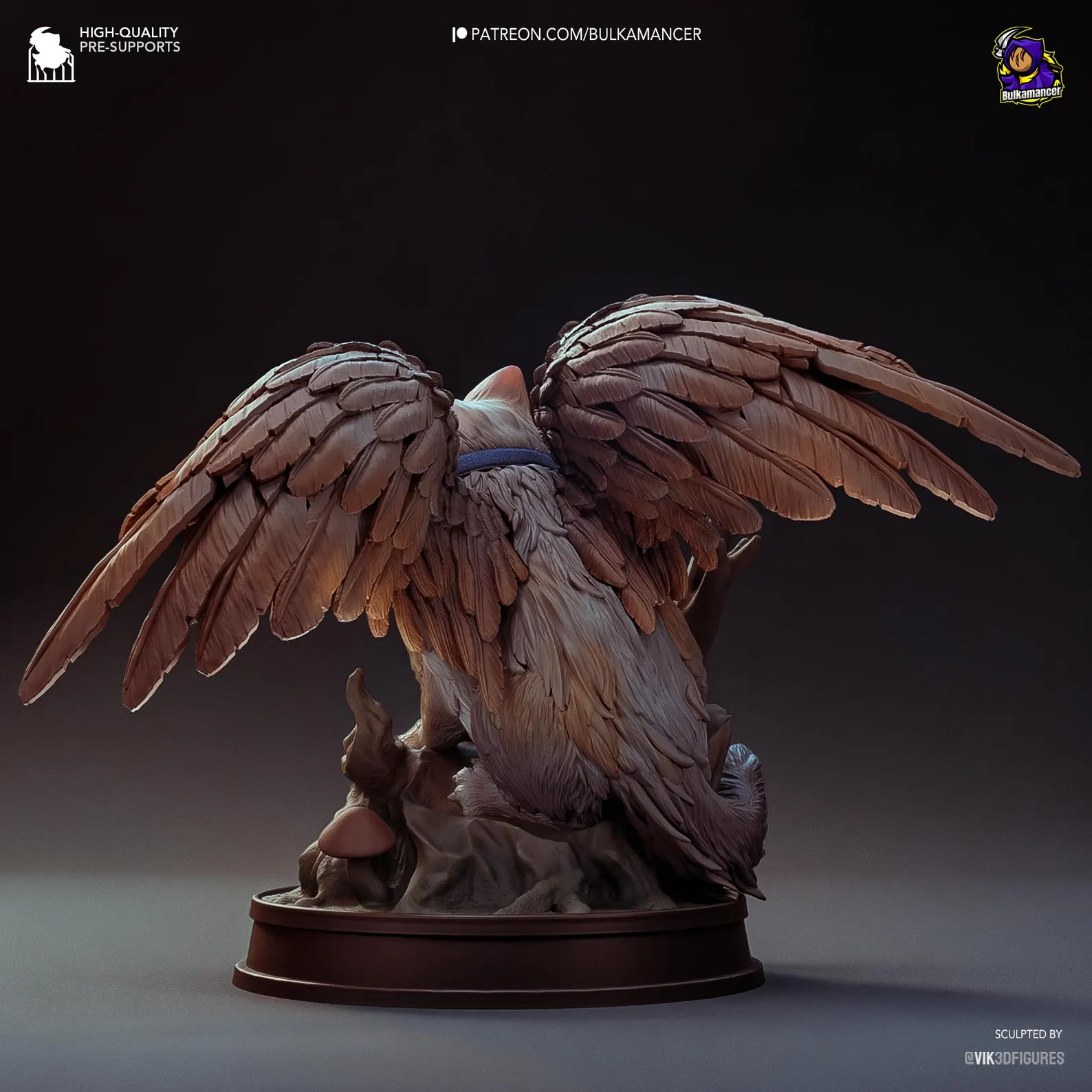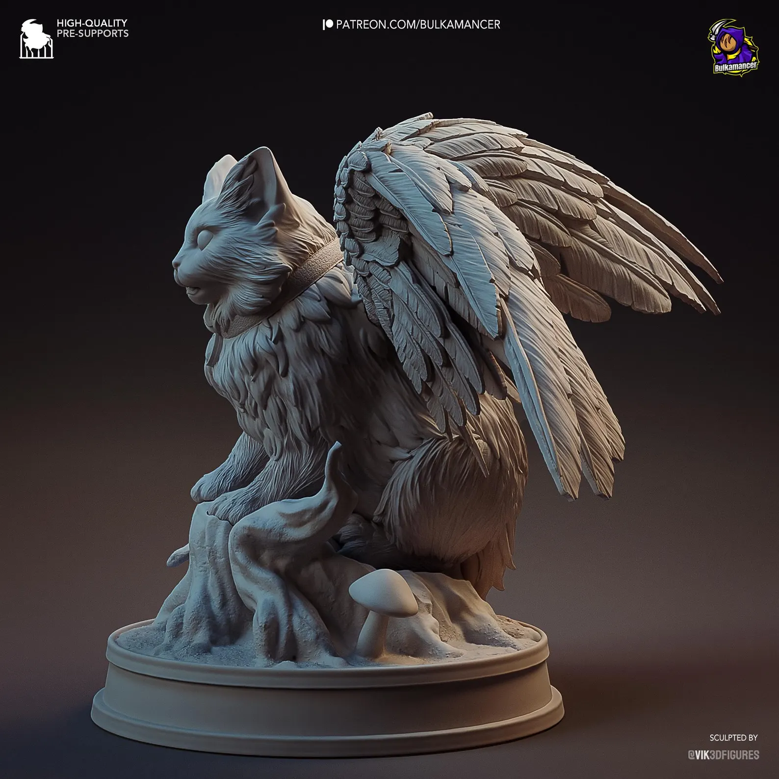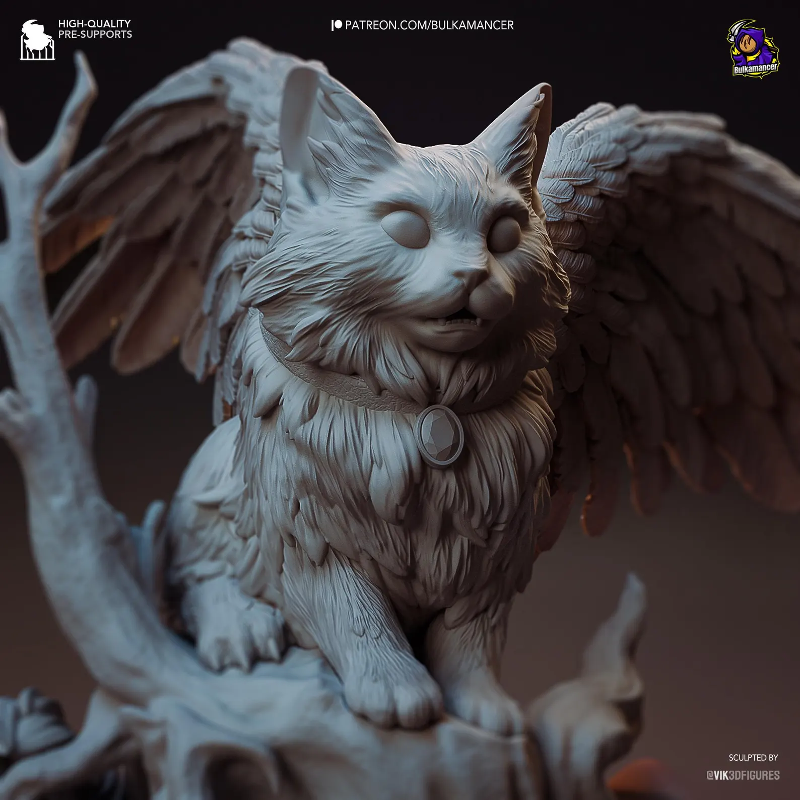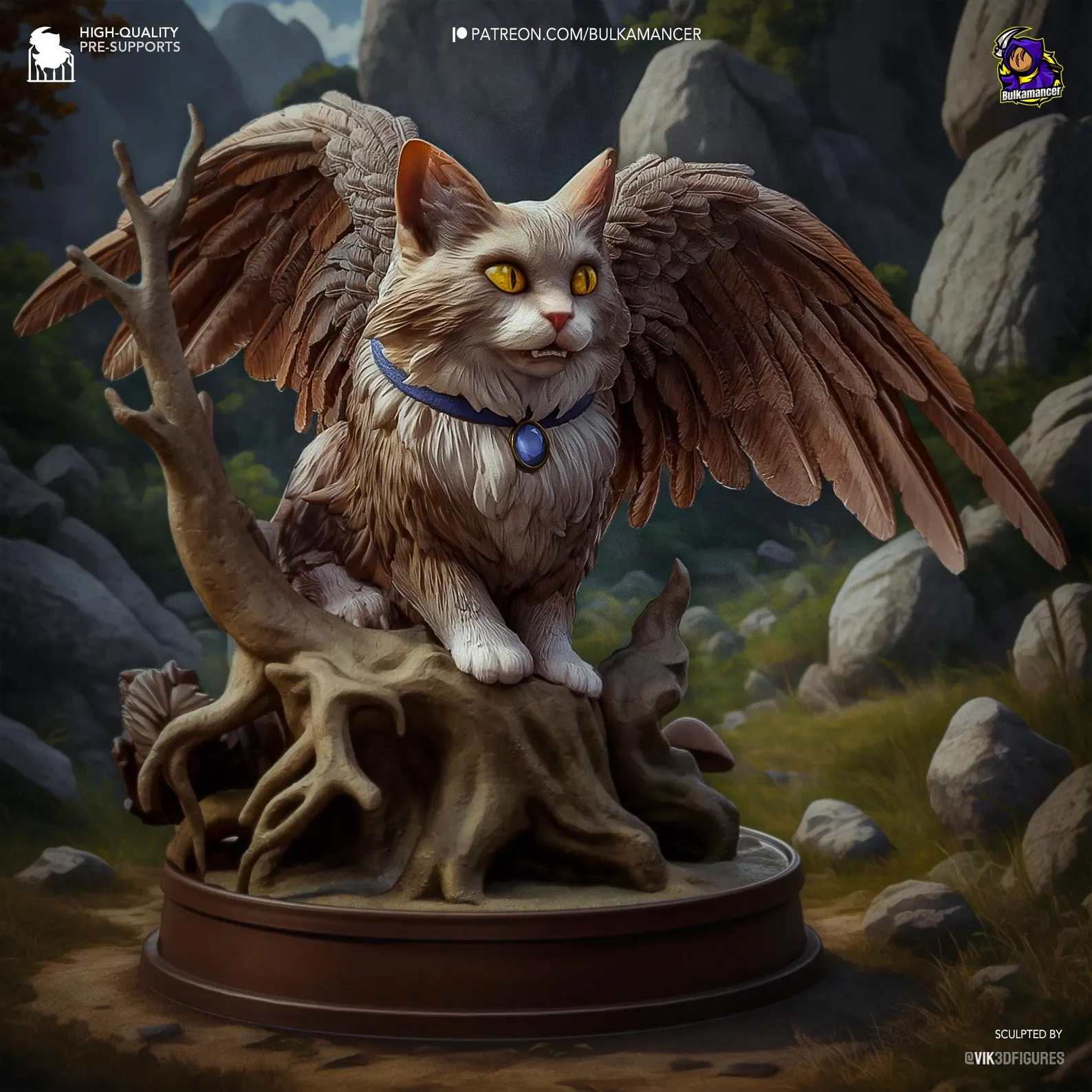 Baldur’s Gate 3 – Tara Figure. Graceful winged feline companion with detailed fur, feathers, and diorama base. 3D printed in high-detail resin, available unpainted garage kit or fully painted. Model by Vik3DFigures for Bulkamancer Sculpts.
