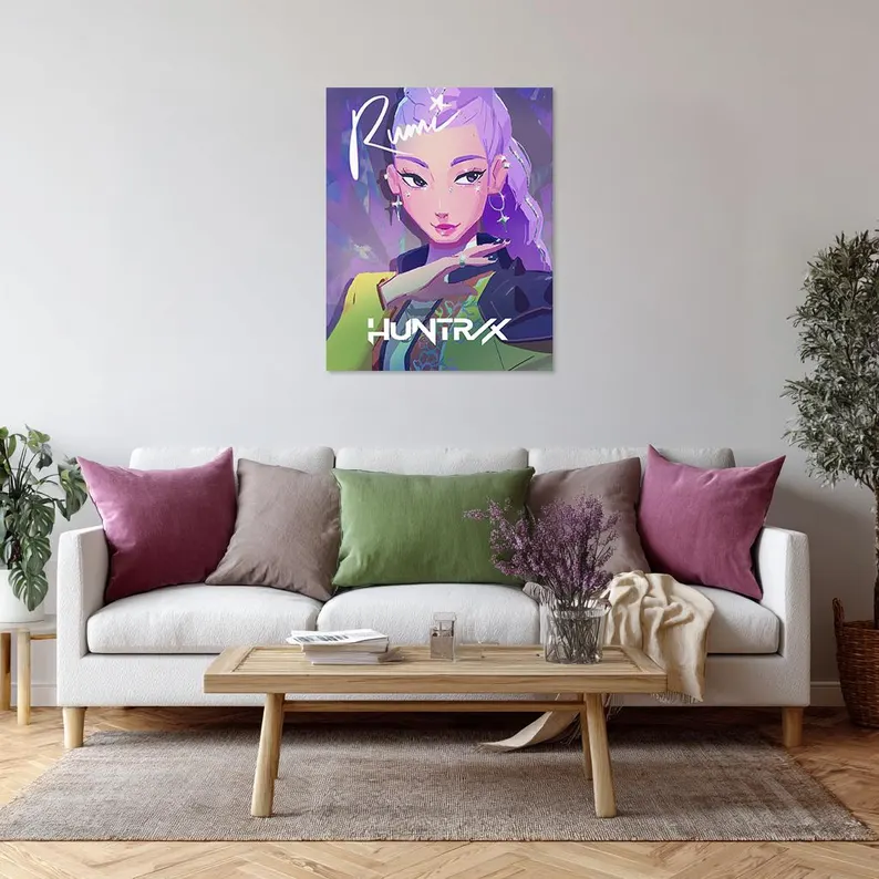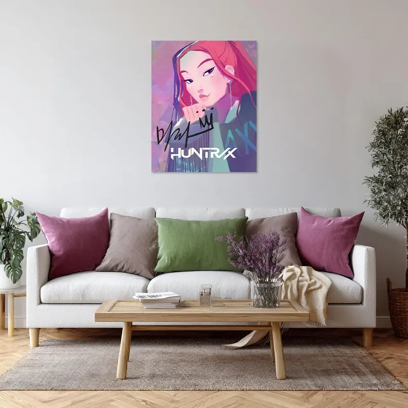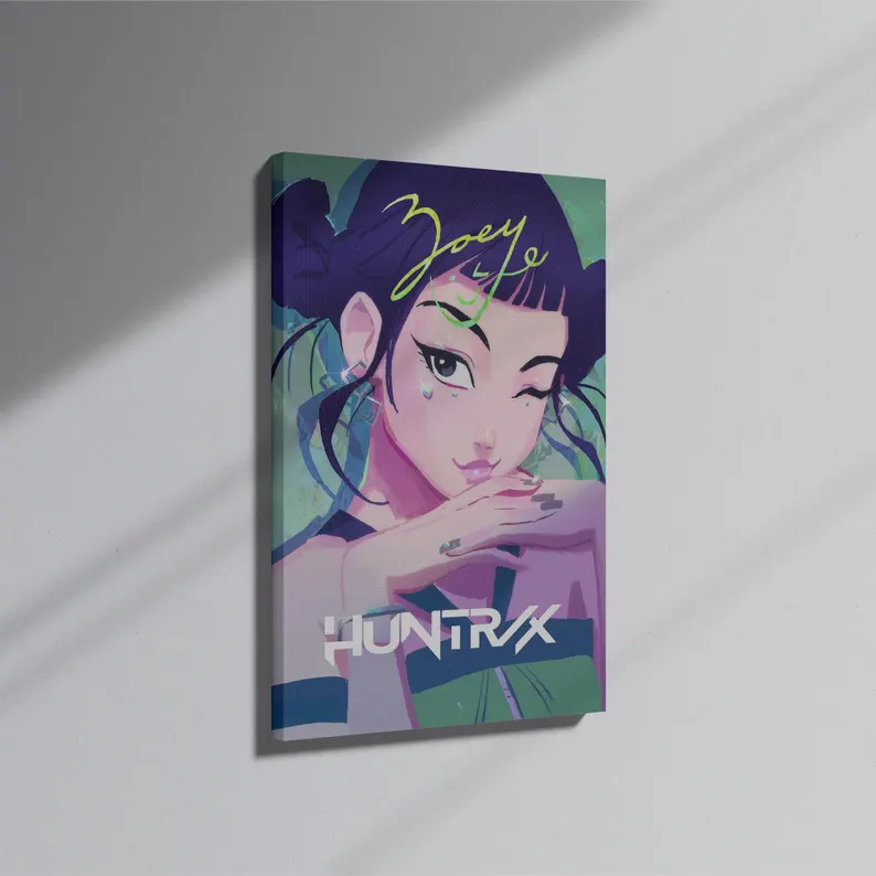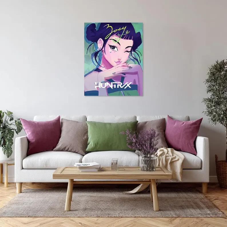 Bring the powerful presence of K-POP Demon Hunters into your space with this HUNTRIX group poster featuring Zoey, Rumi, and Mira. Each character brings a unique personality, visual style, and energy, creating a dynamic and balanced composition. At the same time, the artwork blends bold K-POP aesthetics with a refined, collectible look. As a result, this HUNTRIX wall art works perfectly as a statement piece or as part of a curated fandom display.