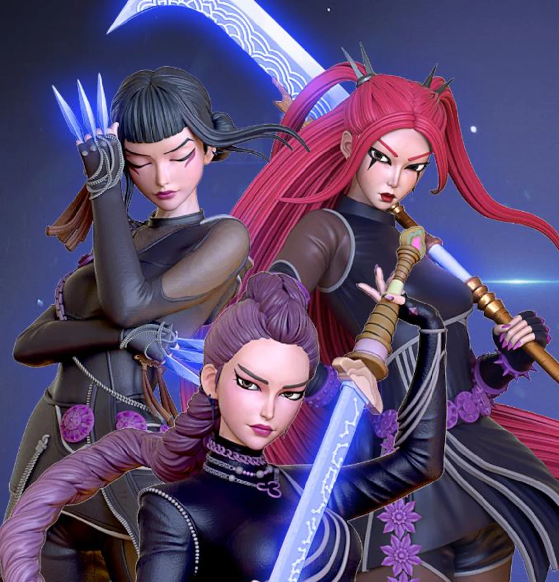Designed by OXO3D, the sculpt captures their unique personalities: Rumi’s confidence, Mira’s calm determination, and Zoey’s fierce charisma. Together, they form an energetic centerpiece worthy of any collector’s shelf or studio display.