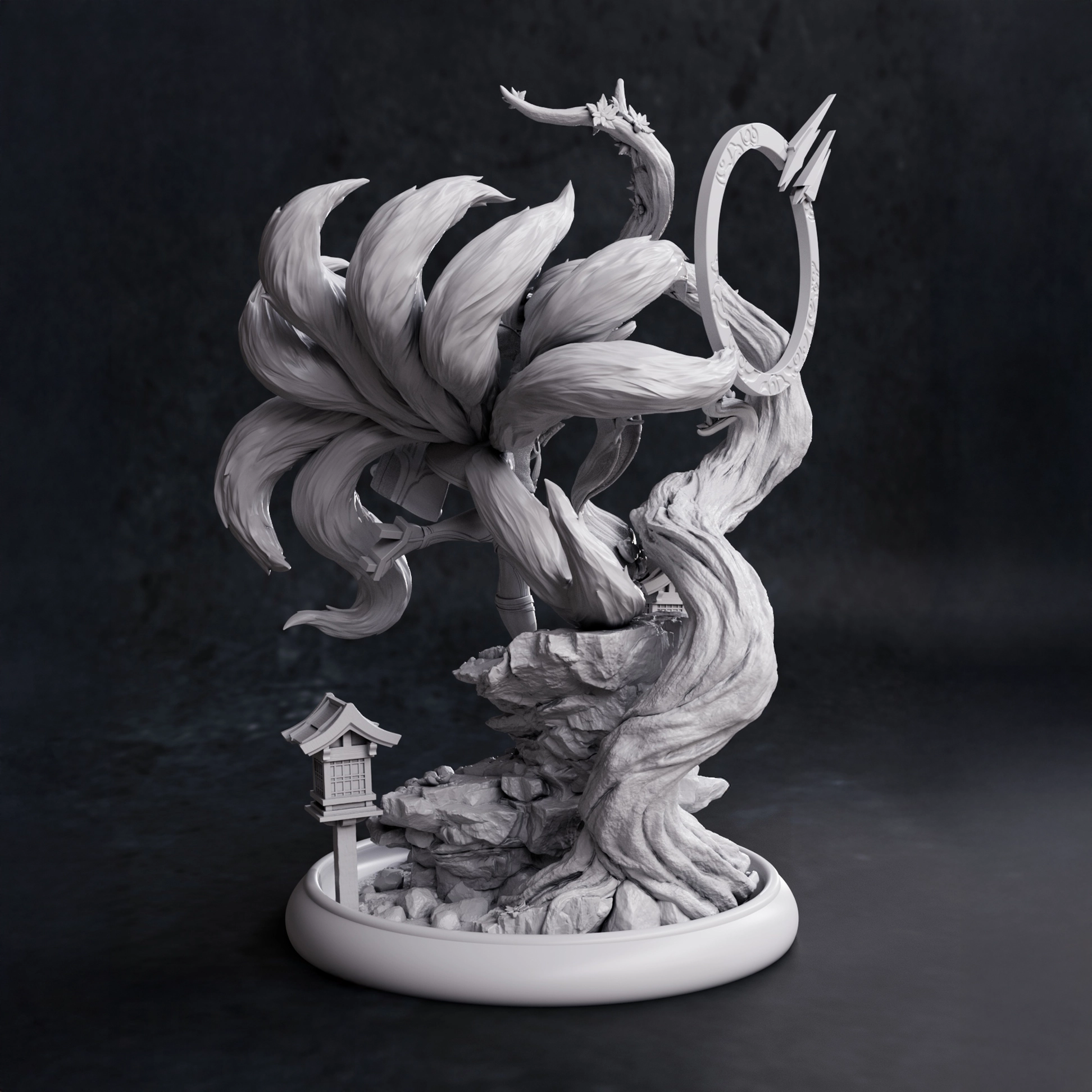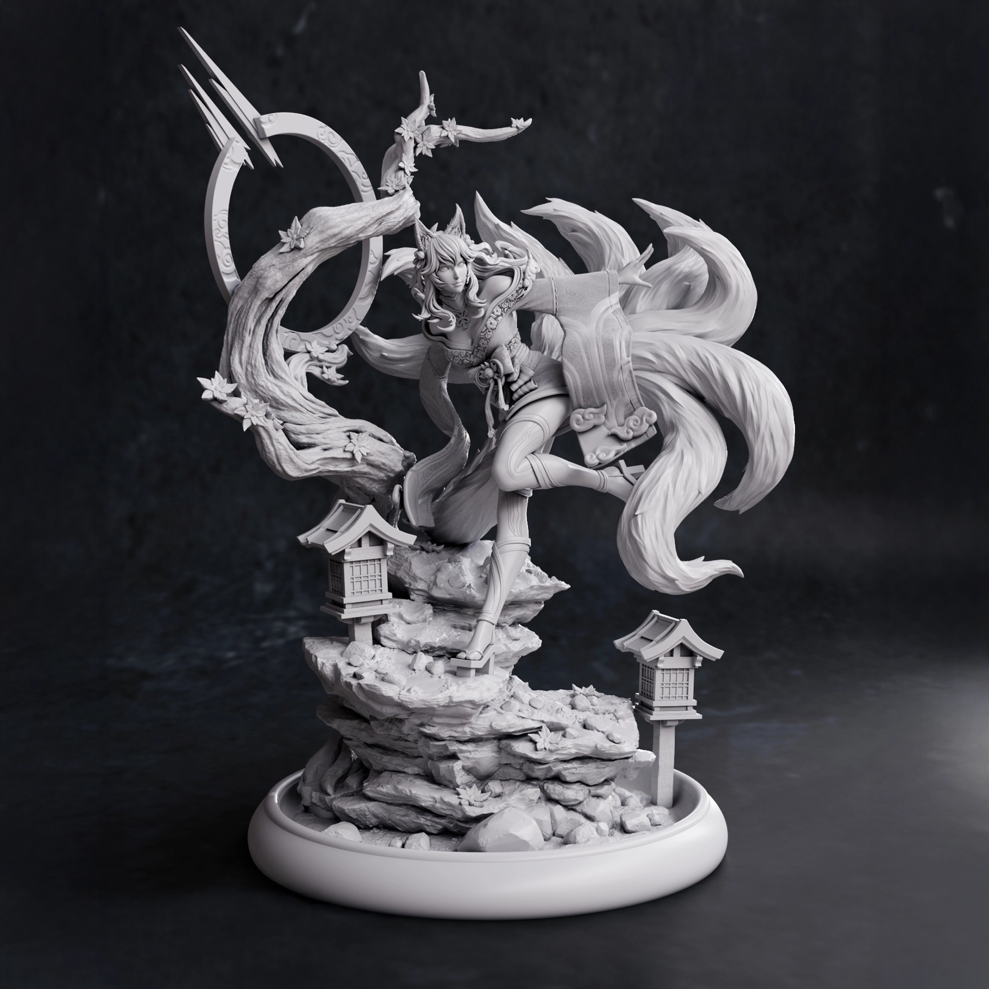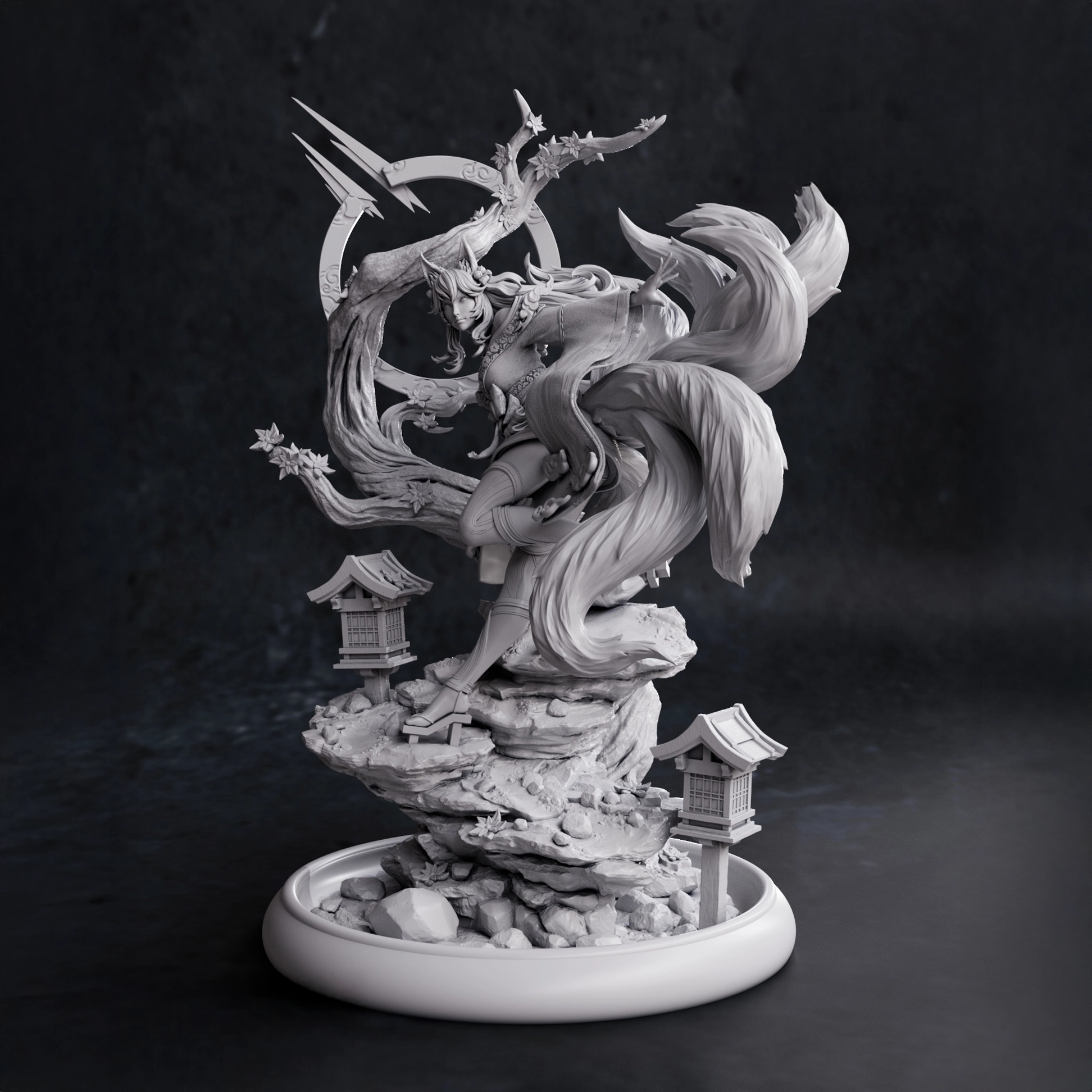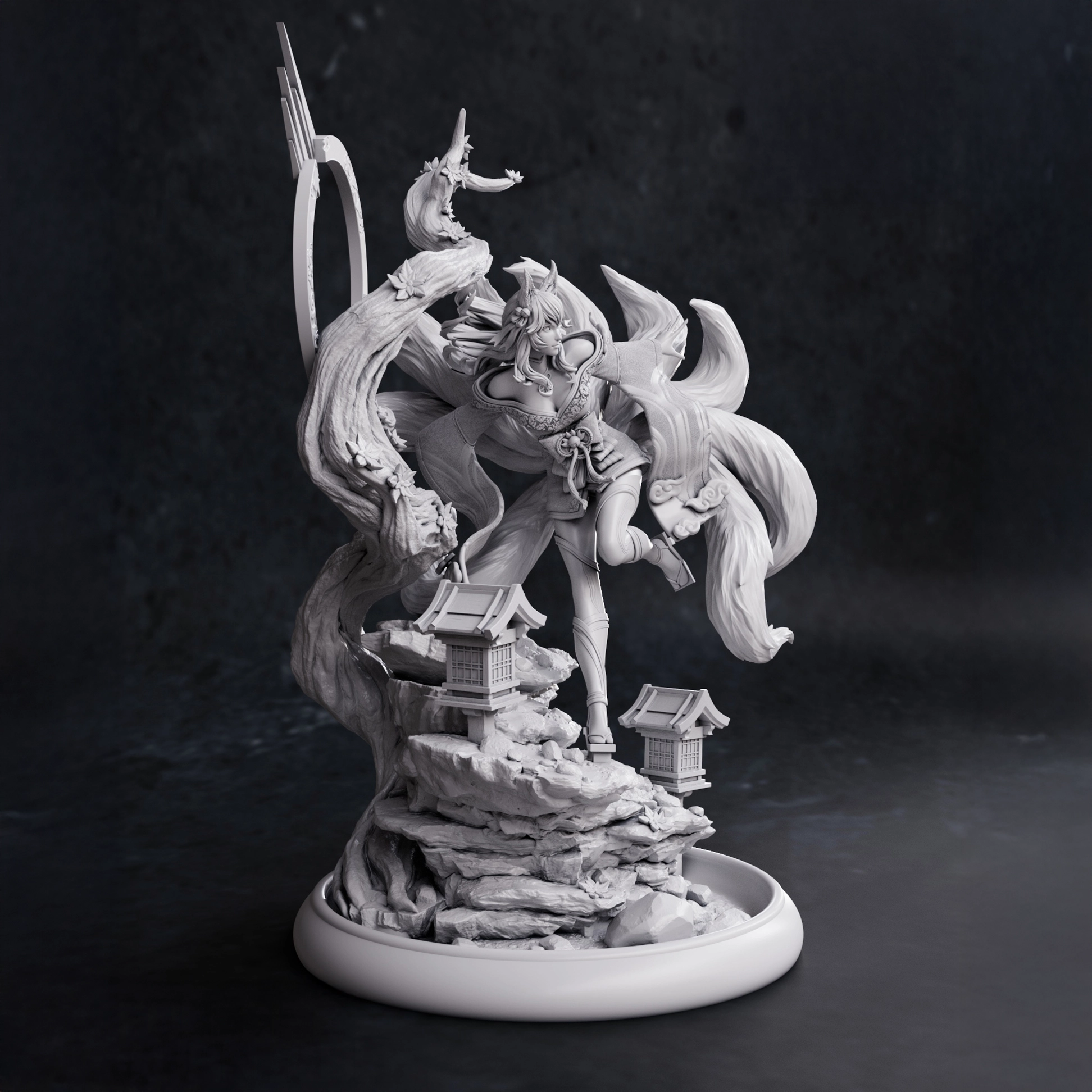 Ahri Spirit Blossom statue from League of Legends in 1:10 scale. Detailed resin garage kit by NomNom Figures with full figure or bust options. Dimensions: 200 x 199 x 308 mm