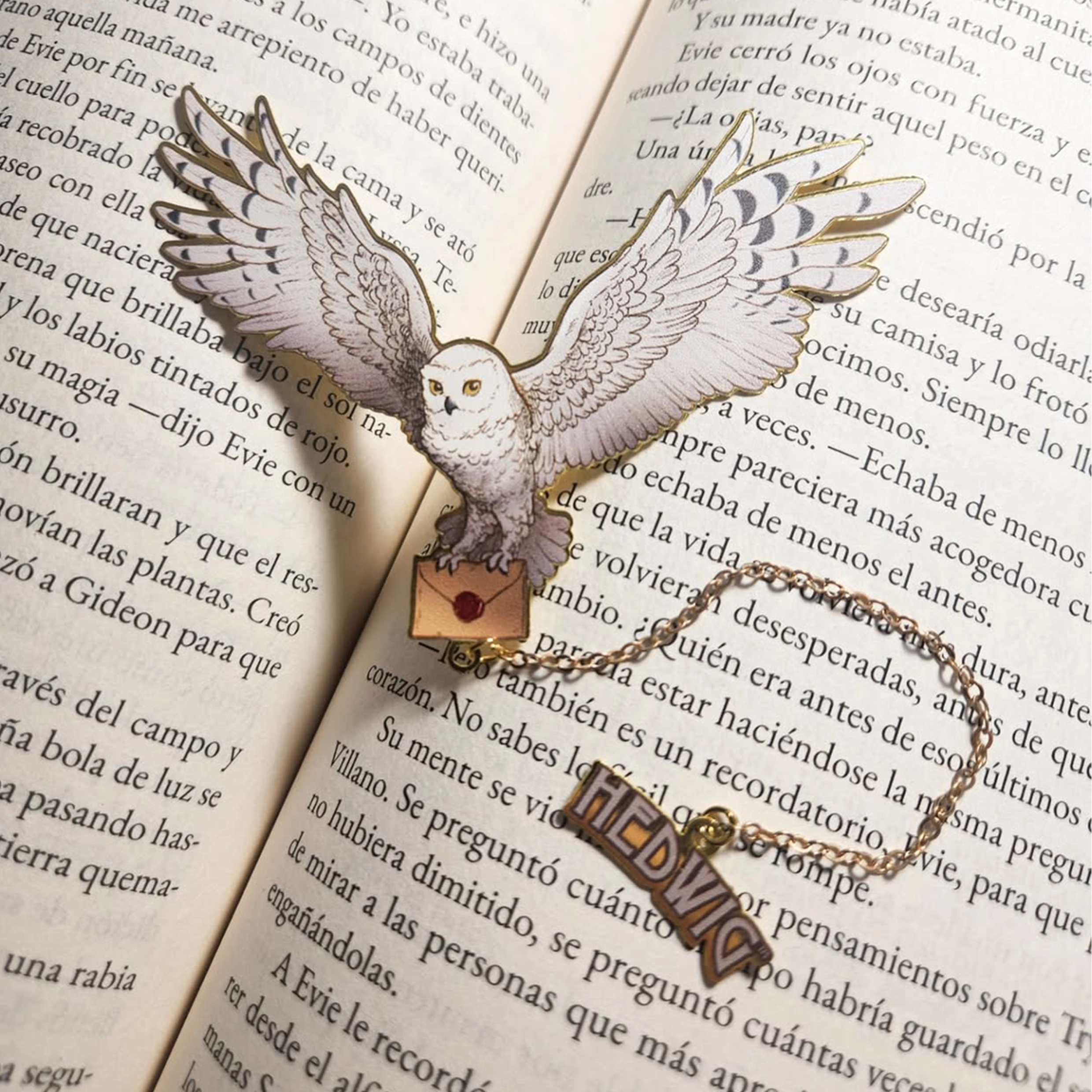Magical snowy owl bookmark inspired by a legendary wizarding messenger, featuring detailed wings and a sealed letter design. With a size of 95 mm, this lightweight bookmark adds charm and personality to your books, journals, or planners. A beautiful reading accessory and collectible piece for fantasy and owl lovers.
