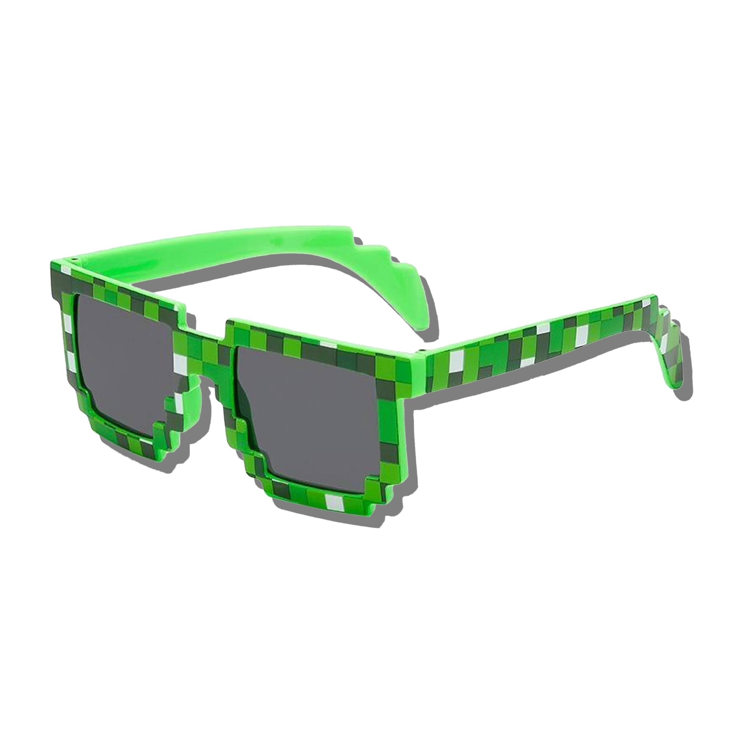 Bring the unmistakable look of Minecraft into the real world with these Creeper Sunglasses. Inspired by the iconic green Creeper mob, these pixelated sunglasses instantly reference the game’s blocky visual style. At the same time, their bold color and square design make them playful and eye-catching.