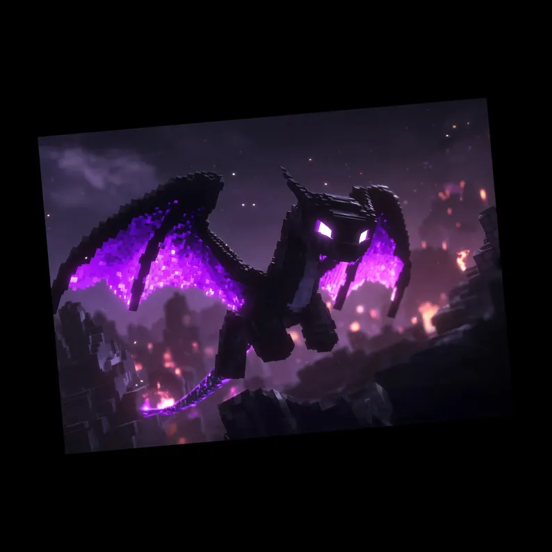 Step into the End dimension of Minecraft with this Ender Dragon poster, inspired by the game’s final and most iconic challenge. At the same time, the artwork immediately draws attention to the legendary dragon. Moreover, it presents the creature in a powerful and dramatic composition. In addition, the scene reflects the dark atmosphere of the End realm. Furthermore, it conveys the epic scale and intensity of the final encounter. As a result, and therefore, this Minecraft Ender Dragon wall art stands out as a bold statement piece for fans of the game.
