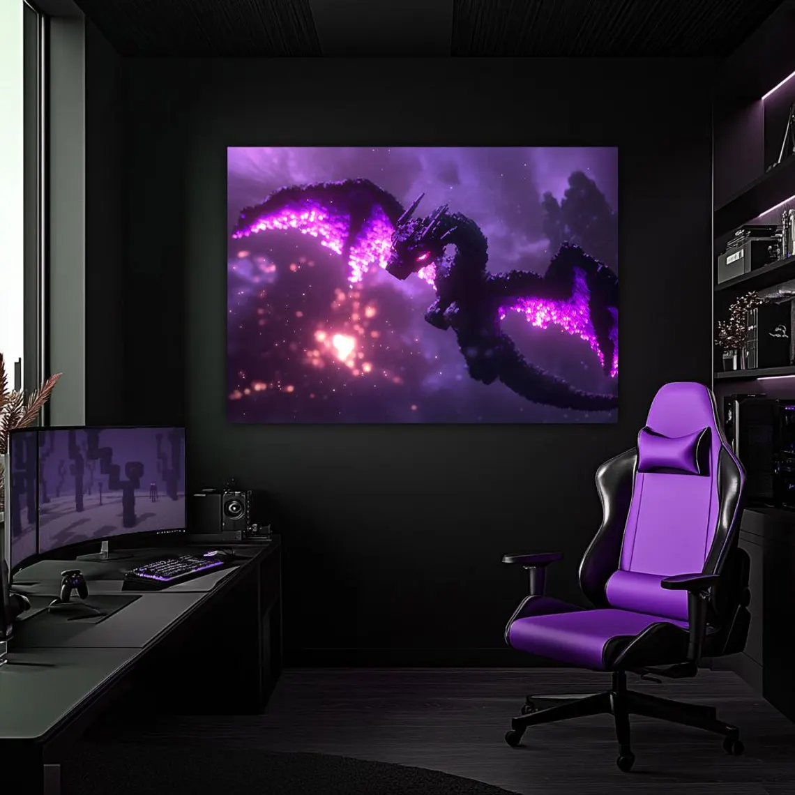 Step into the End dimension of Minecraft with this Ender Dragon poster, inspired by the game’s final and most iconic challenge. At the same time, the artwork immediately draws attention to the legendary dragon. Moreover, it presents the creature in a powerful and dramatic composition. In addition, the scene reflects the dark atmosphere of the End realm. Furthermore, it conveys the epic scale and intensity of the final encounter. As a result, and therefore, this Minecraft Ender Dragon wall art stands out as a bold statement piece for fans of the game.